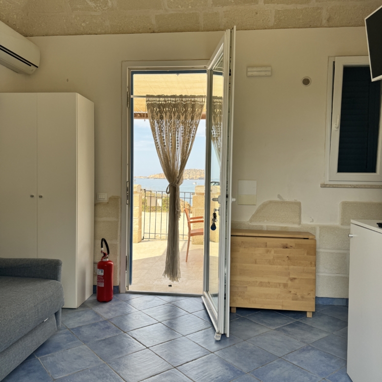 Scopri la nostra deliziosa dependance/monolocale, piccola, ma ben organizzata per ospitare due persone. All’interno troverai un pratico divano letto, facile da aprire e chiudere, con una rete elettrosaldata e un materasso di 160×190 cm h. 20 cm, dal quale potrai ammirare il mare sotto casa. Il bagno è dotato di una moderna doccia e l’angolo cottura è pronto per le tue avventure culinarie. E’ dotata di climatizzatore, cassaforte, phon, televisione e WI-FI gratuito.